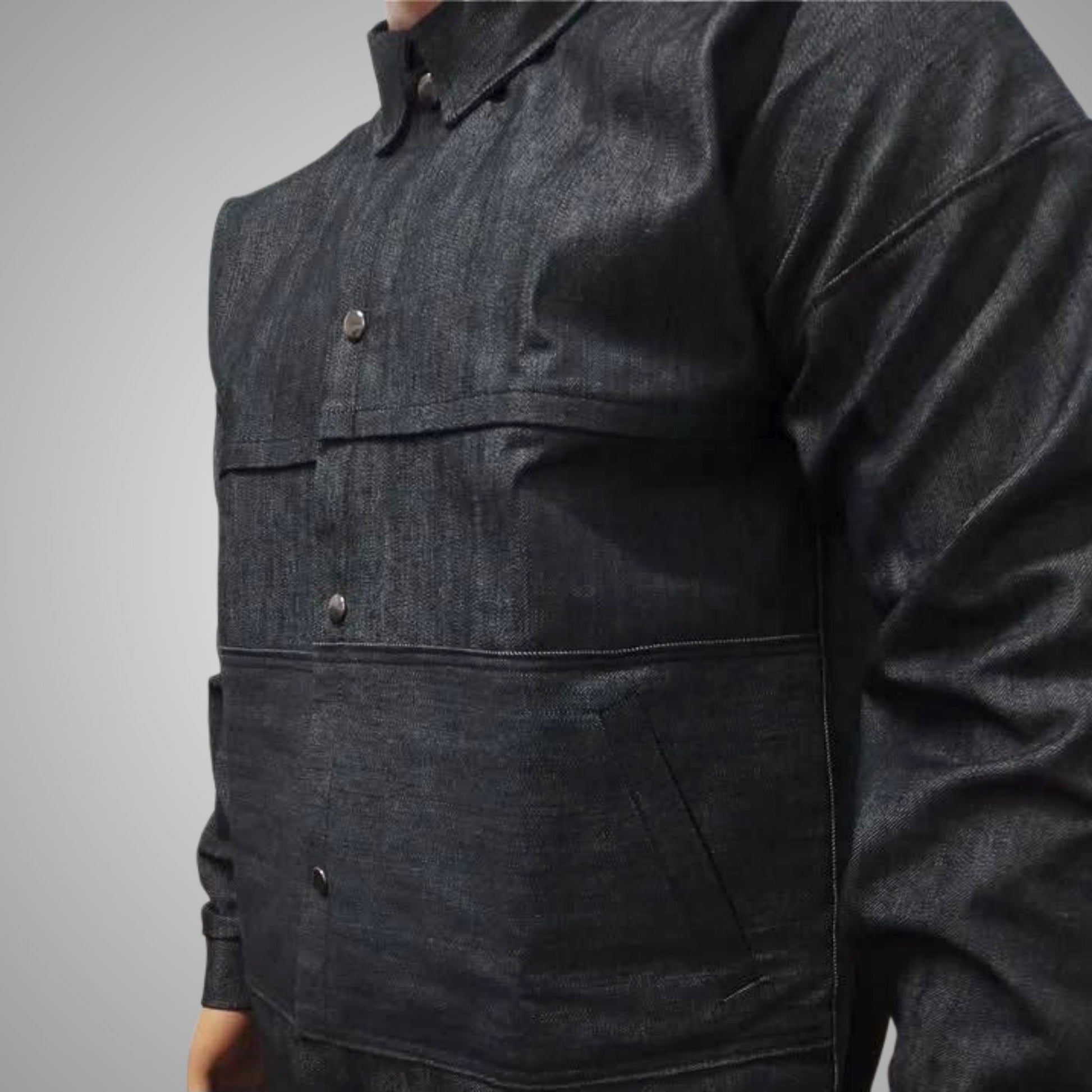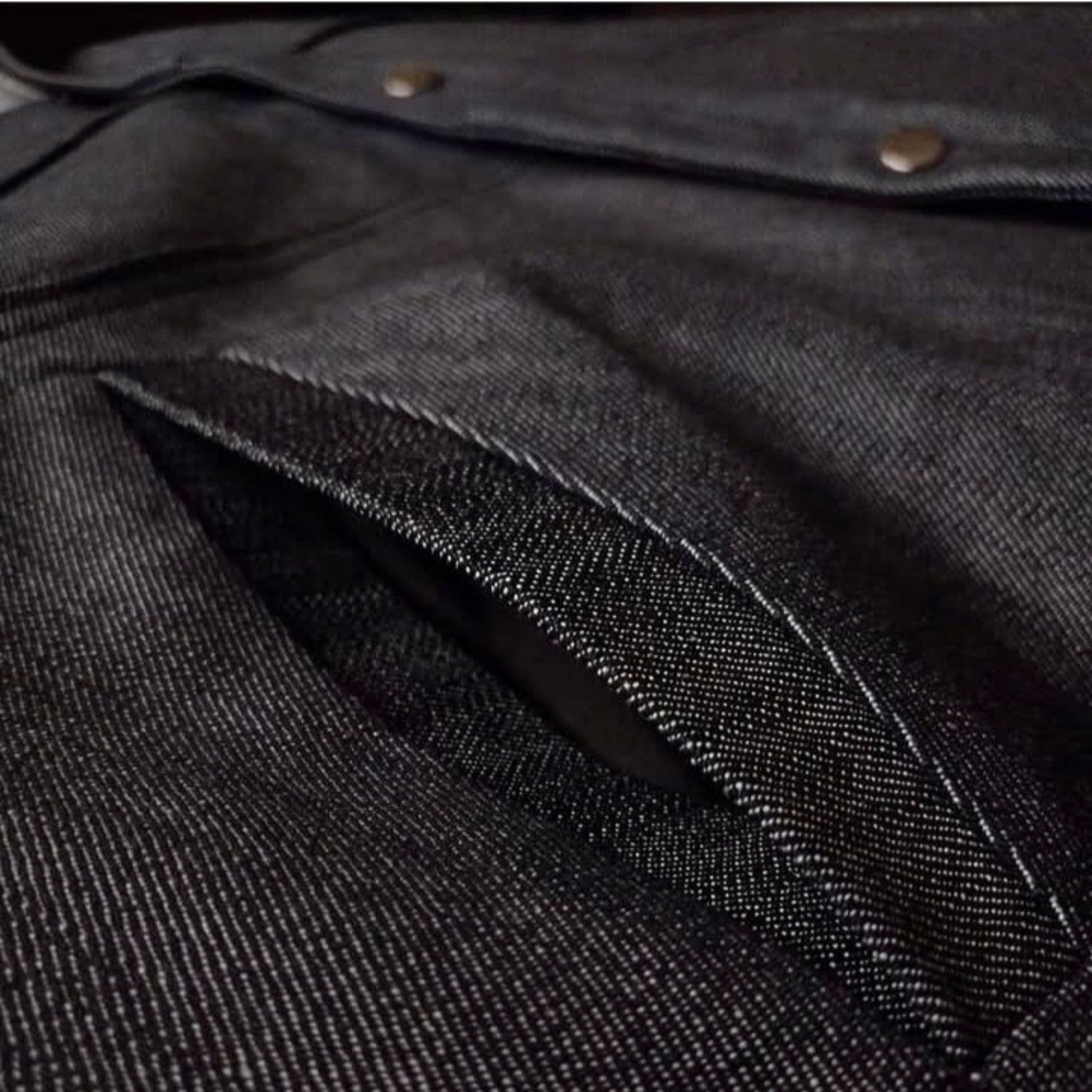 The denim jacket is Crafted from washed black denim with a soft finish, this midweight layer features welt side pockets, matte snap buttons, and an elastic cuff for subtle structure. Ideal for everyday styling, city layering, or casual workwear looks.